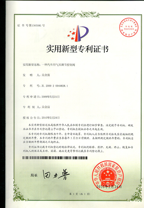 實用新型專利證書
